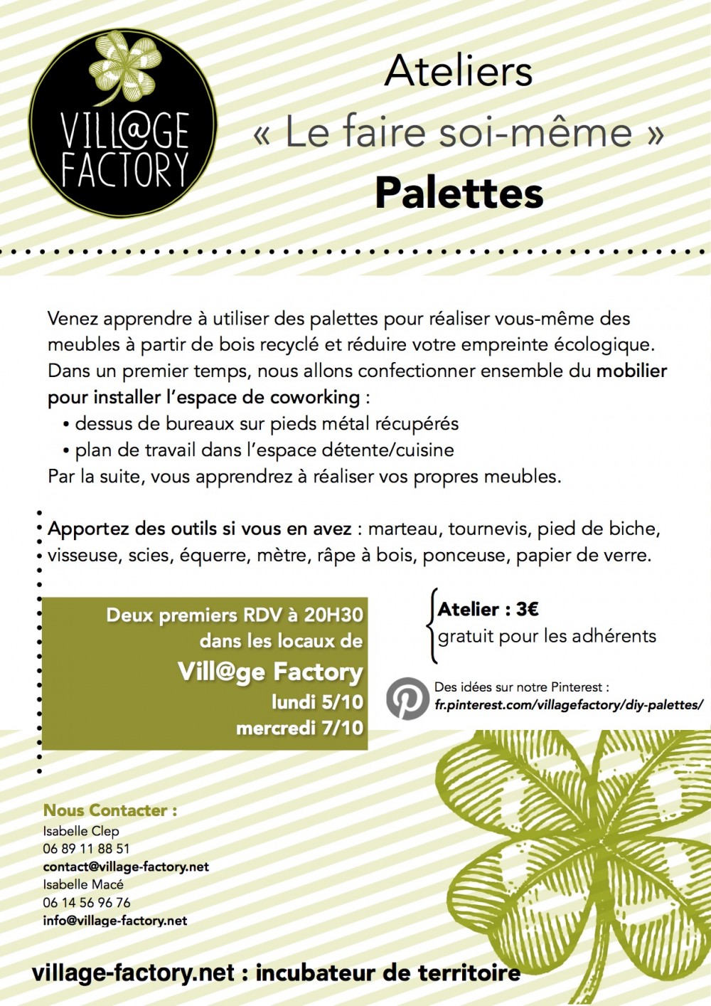 Les ateliers “Faire soi-même” par isabelleCG | 2 Oct 2015 | Actus formations/ateliers | 0 commentaires Les ateliers ont lieu tous les lundi soir jusqu’aux vacances de février Poster le commentaire Annuler la réponseVotre adresse e-mail ne sera pas publiée. Les champs obligatoires sont indiqués avec *Commentaire * Nom * E-mail * Site web Δ